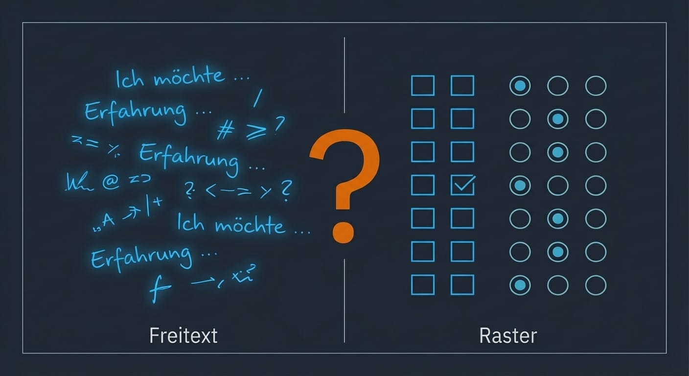 - Psychologisch sinnvoll = offene Antworten